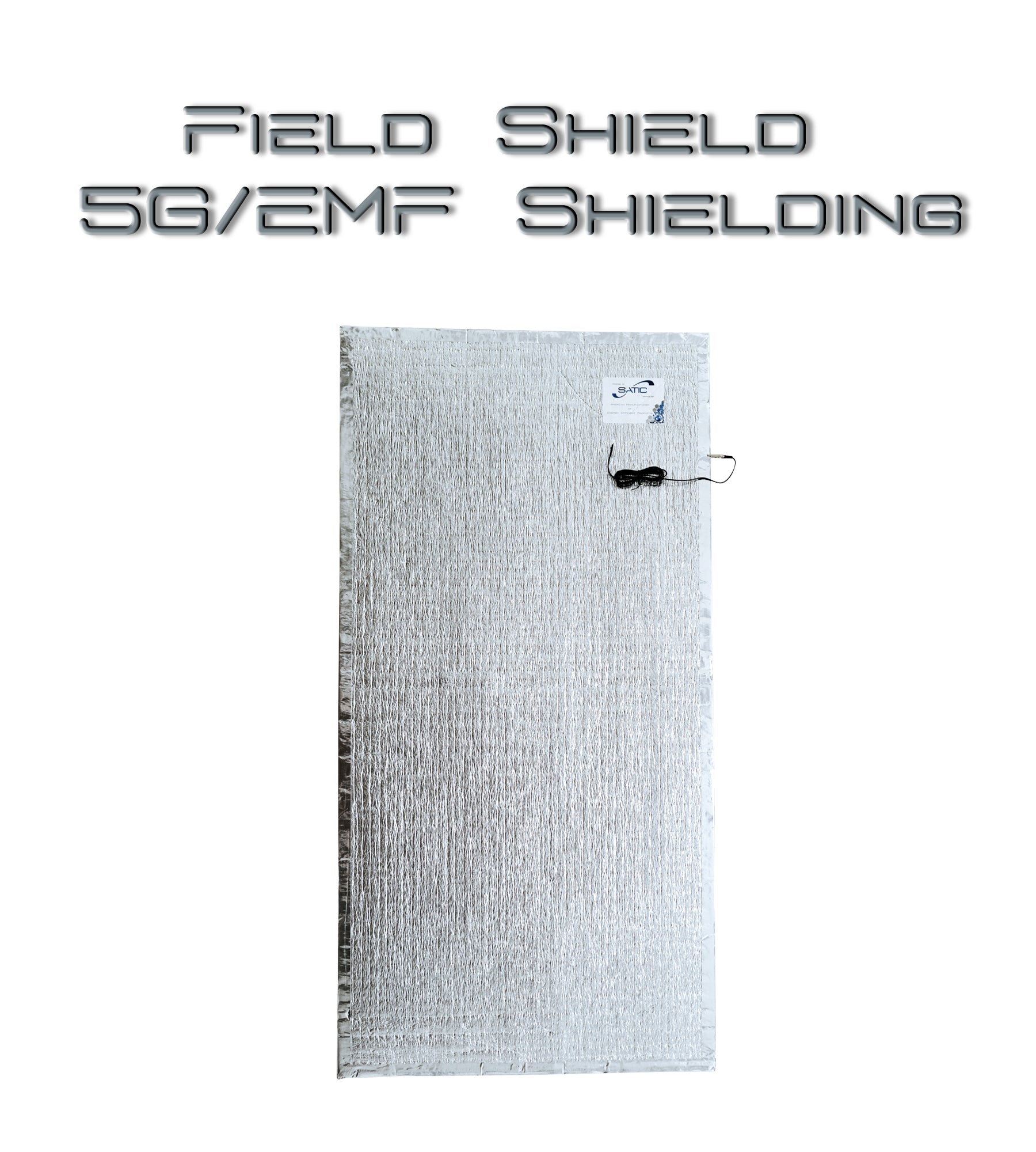 A grounded Field Shield that comes in a standard size of 24" by 48" to be placed on the wall directly behind a smart meter or breaker panel to reduce EMF emissions. Special construction utilizing NASA grade radiation coating between layered scrimless aluminum foil laminated to polyethylene foam to reflect and ground negative RF radiation. Grounding cord connects to screw on a standard 120V outlet with a 6 foot cord. Click "Tech Specs" for more technical information. FieldShield Tech Specs